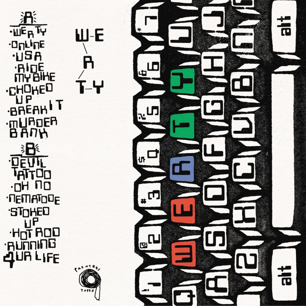 On Halloween, TY’s stomping and elemental punk single “Devil Tattoo” scorched the earth upon impact. Their debut tape WE R TY capitalizes on that track’s promise. This Detroit band featuring members of Fen Fen and H8 Mile make meatheaded egg punk; just listen to that combination of gruff dude vocals and nimble guitars on “Choked Up.” Their dirtbag patriotism on the jagged and grimy rock’n’roll track “USA” lands like puke splattering across a sidewalk outside a bar; a familiar brand of flag waving raw sewage roq from the D. “Oh No” is classic ’70s power pop at 1.5x speed and 1.5x burliness. Right when you think you’ve heard them at their fastest, they scream and sprint through the minute-long banger “Nematode.” There’s never a dull moment, with multiple songs jockeying for position as “the one.” They strike this excellent balance between sloppy and precise: a bookworm doing a keg stand, a revered painter shotgunning a can of Monster, a Beard Award semifinalist chef microwaving a Powerman 5000 CD.
